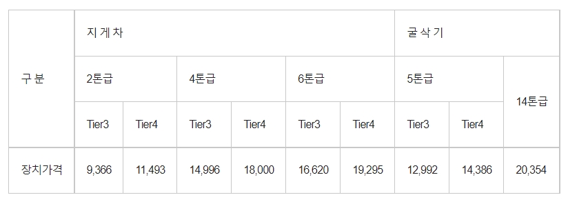 - 내구성 및 연식 등의 상태를 고려하여 엔진교체 가능 건설기계