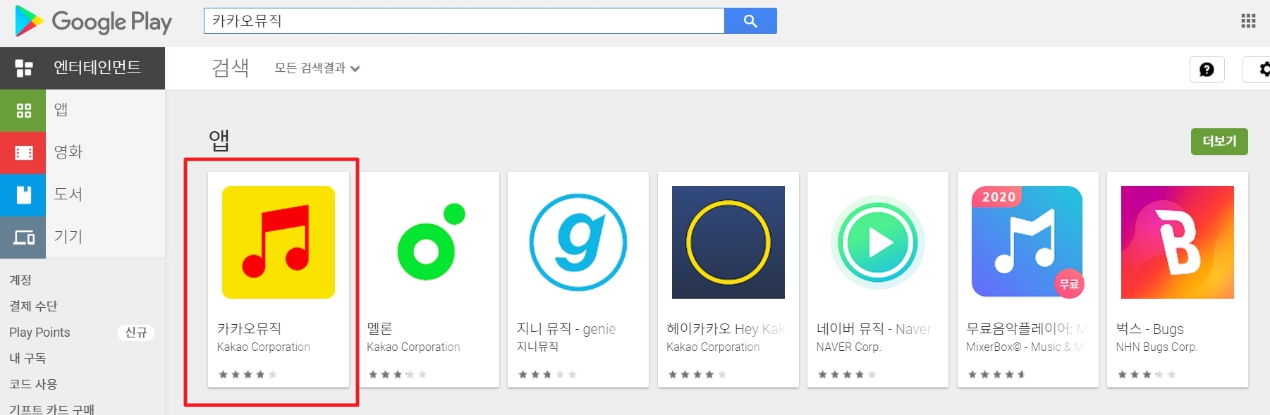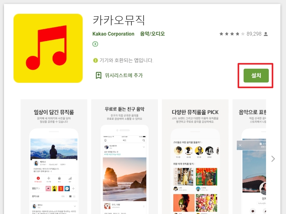 1. 그럼, 방법 알아보겠습니다. 먼저 카카오뮤직 어플을 깔아야 하는데요. 구글 플레이스토어에서 '카카오뮤직'을 검색하셔서 어플을 다운로드 받아주세요.