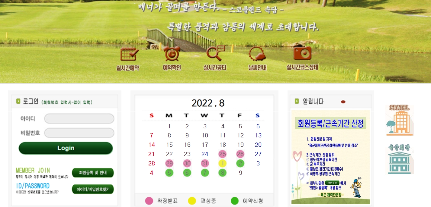 육군력단련장 홈페이지 바로가기 : https://www.armywelfaregolf.mil.kr/
