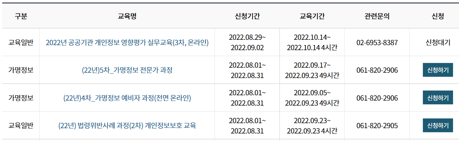 1) 온라인교육 바로가기 : https://www.privacy.go.kr/edu/inf/EduInfoList.do?lecture_code=01