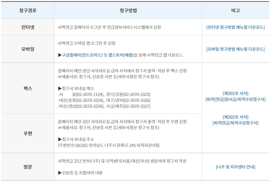※퇴직연금·퇴직연금공제 일시금·조기퇴직연금·퇴직(연금) 일시금 선택 시 퇴직수당도 함께 지급되므로 수당만 별도 청구하실 필요없습니다.