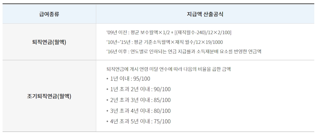 2010년 이후기간 지급액 : 기준소득월액 x 재직년수 x 재직년수별 지급률 (아래 표 참고)