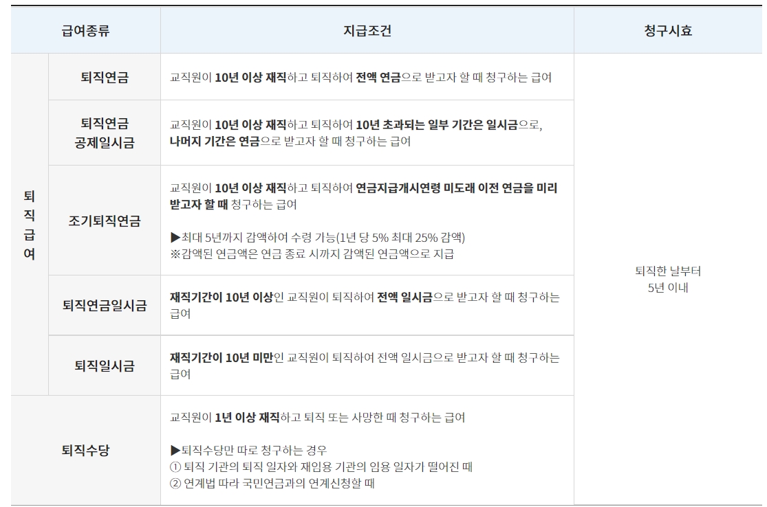 [교직원기준 급여종류 및 청구기간]