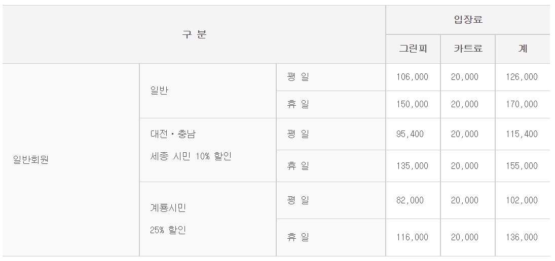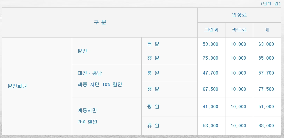 - 대전충남세종지역주민 10%할인: 지역주민 확인 가능한 본인 신분증 지참