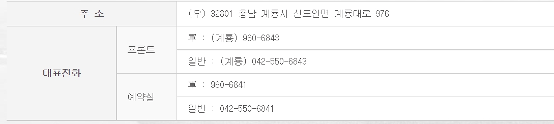 계룡대체력단련장 홈페이지 바로가기 : https://www.armywelfaregolf.mil.kr/subPage.do