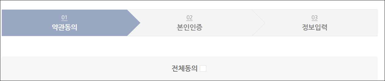 2) 가입절차는 약관동의 > 본인인증 > 정보입력 순으로 진행하시면 됩니다.