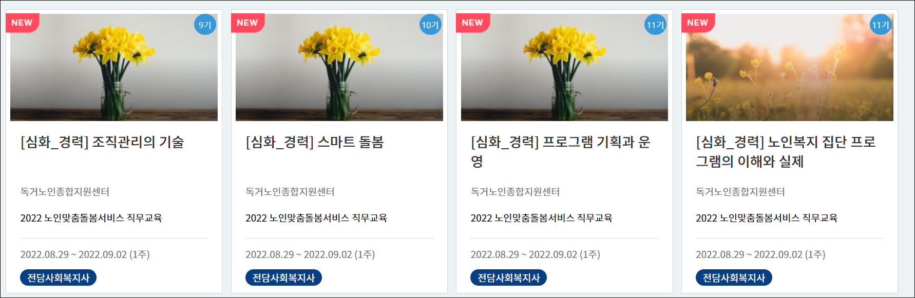 해당 사이트는 돌봄이 필요한 취약노인에게 돌봄서비스를 제공하는 사회복지사와 생활지원사의 역량강화를 위해 교육훈련과 지원사업을 수행하고 있는데요. 홈페이지에서 처음 이용시 다소 어렵게 느낄 수 있습니다. 그래서 오늘 종사자 교육신청에 대해서 간단하게 알아보겠습니다.