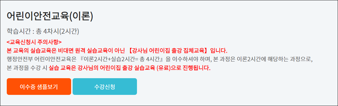 온라인으로 보육교직원 특별직무교육을 운영하고 있습니다. 어린이집 보육교사는 일년에 1회 필수교육을 받아야 하는데요. 모든 의무교육을 이수후 이수증 발급과 교육을 제공하고 있습니다.