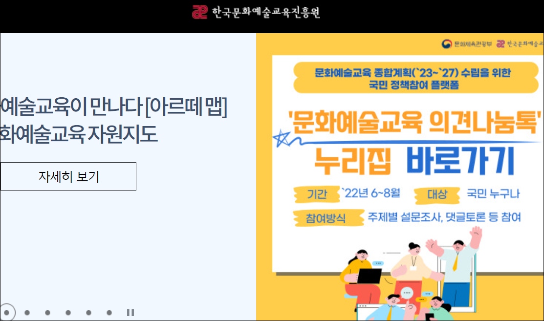 -회원가입, 회원정보 수정, 아이디/비밀번호 확인 등은 한국문화예술교육진흥원 대표 홈페이지에서 가능합니다.