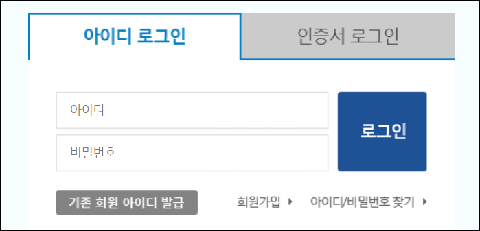 -나라배움터 로그인 방식에는 두가지가 있는데요. 아이디 또는 인증서인증입니다. 두가지 중에서 선택하시면 됩니다.