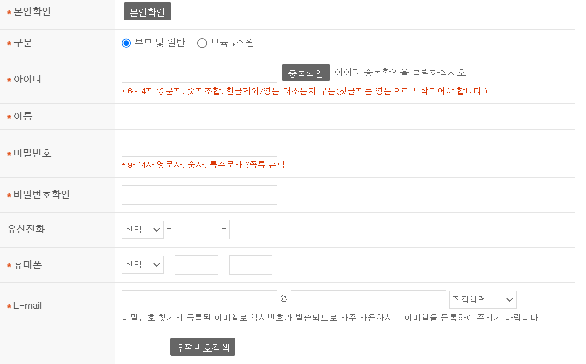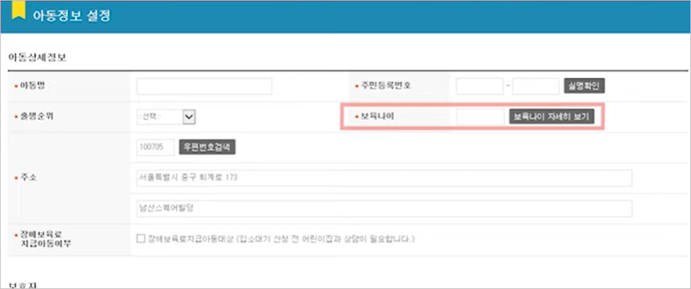 - 아동 보육나이는 임의로 설정할 수 없으며 자동설정됩니다.