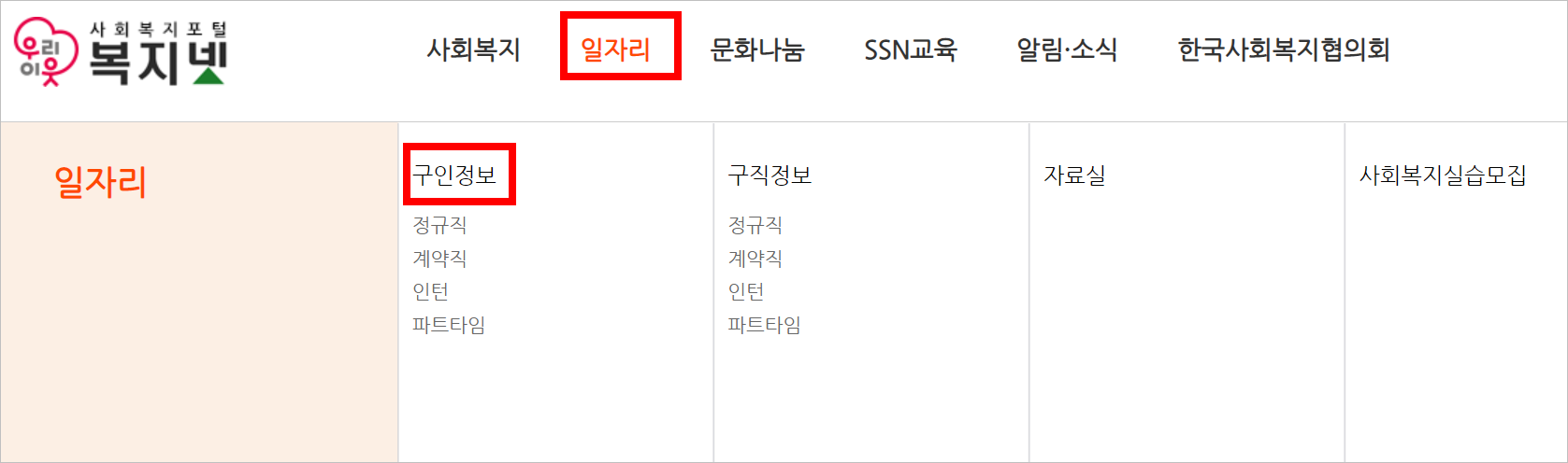 - 복지넷 사이트에서 구인정보를 확인하는 방법입니다.