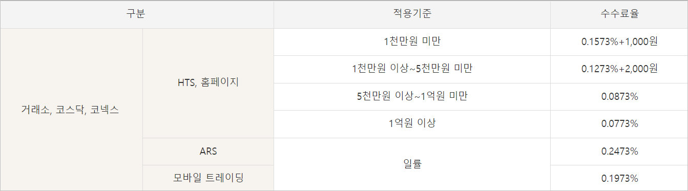 1. 주식매매수수료는 hts, 홈페이지, ARS, 모바일 트레이딩에 따라 수수료율이 다른데요. 아래와 같습니다.