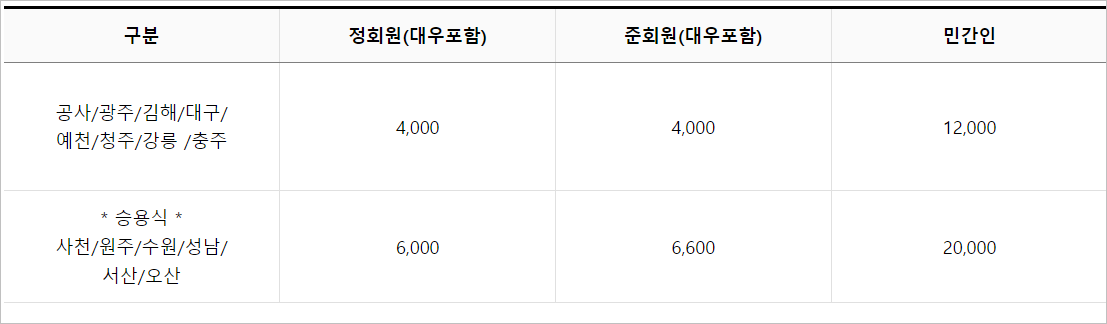 *정(준)회원이 민간인의 날 이용시 민간인 요금 적용됩니다.