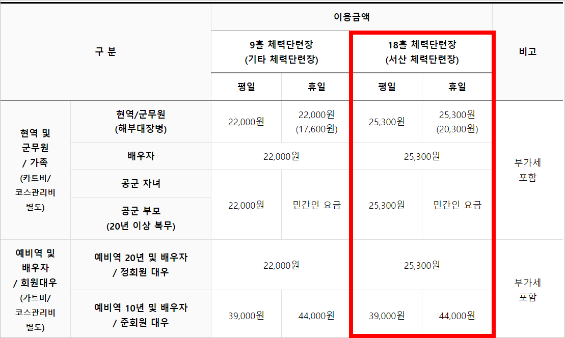 - 평일 25,300원 / 휴일 민간인 요금 적용됩니다.