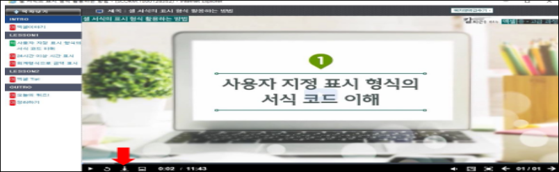 원격수업시 수강자료는 학습 차시마다 왼쪽 하단 자료 다운로드에서 받을 수 있습니다.