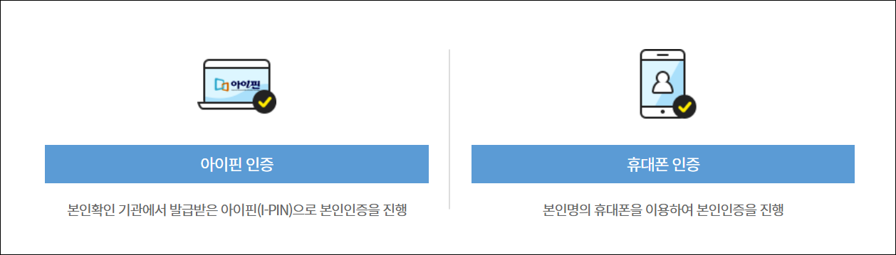 회원가입은 휴대폰 인증 혹은 아이핀 인증 중에서 하나를 선택 후 본인인증 후 가입해야 합니다. 가입순서는 본인인증 > 약관동의 > 정보입력 > 가입완료 순으로 진행하시면 됩니다.