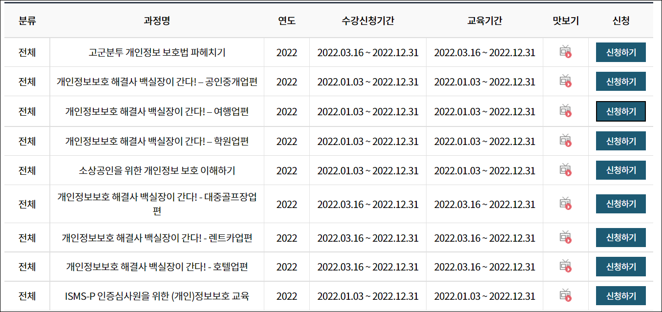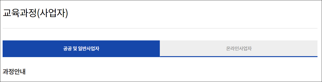사업자에는 공공및 일반사업자와 온라인 사업자가 있는데요. 공공 및 일반사업자인경우 아래 목록 중에서 수강신청이 가능합니다.