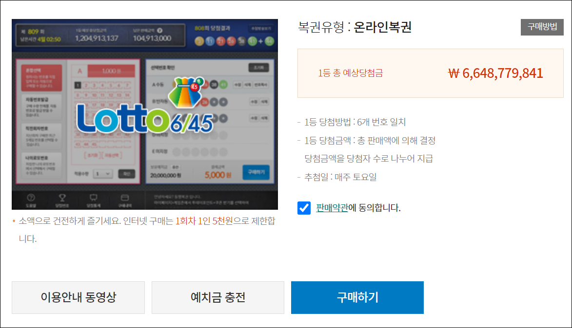 로또 6/45는 편의점이나 복권방같은 판매점에서 구입할 수 있는데요. 동행복권 사이트에서도 구입가능합니다.