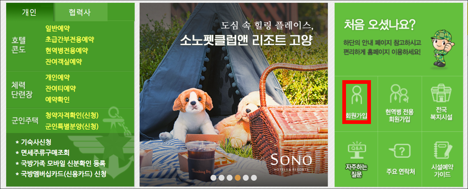 2. 회원가입은 현역병, 산하기관 회원, 일반인 회원가입 중에서 선택하시면 됩니다.