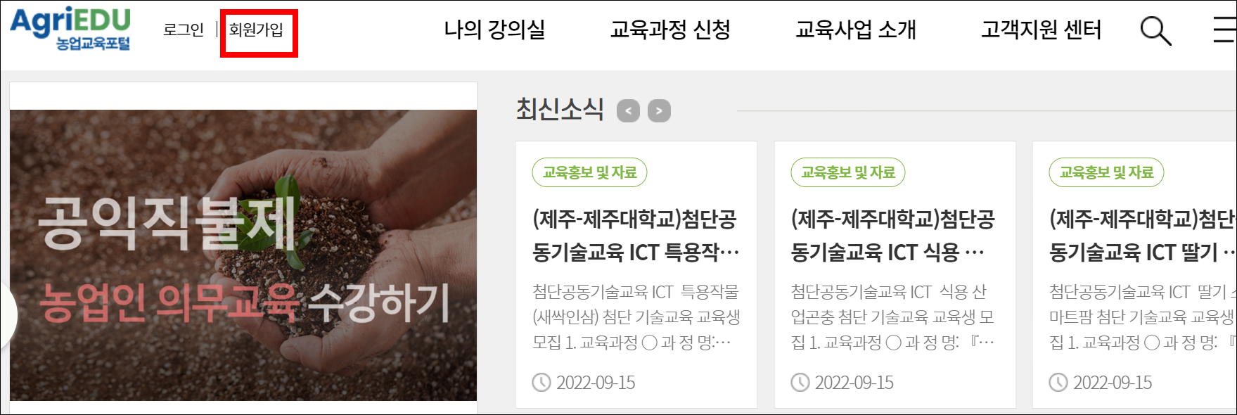 농업교육포털 회원가입 안내