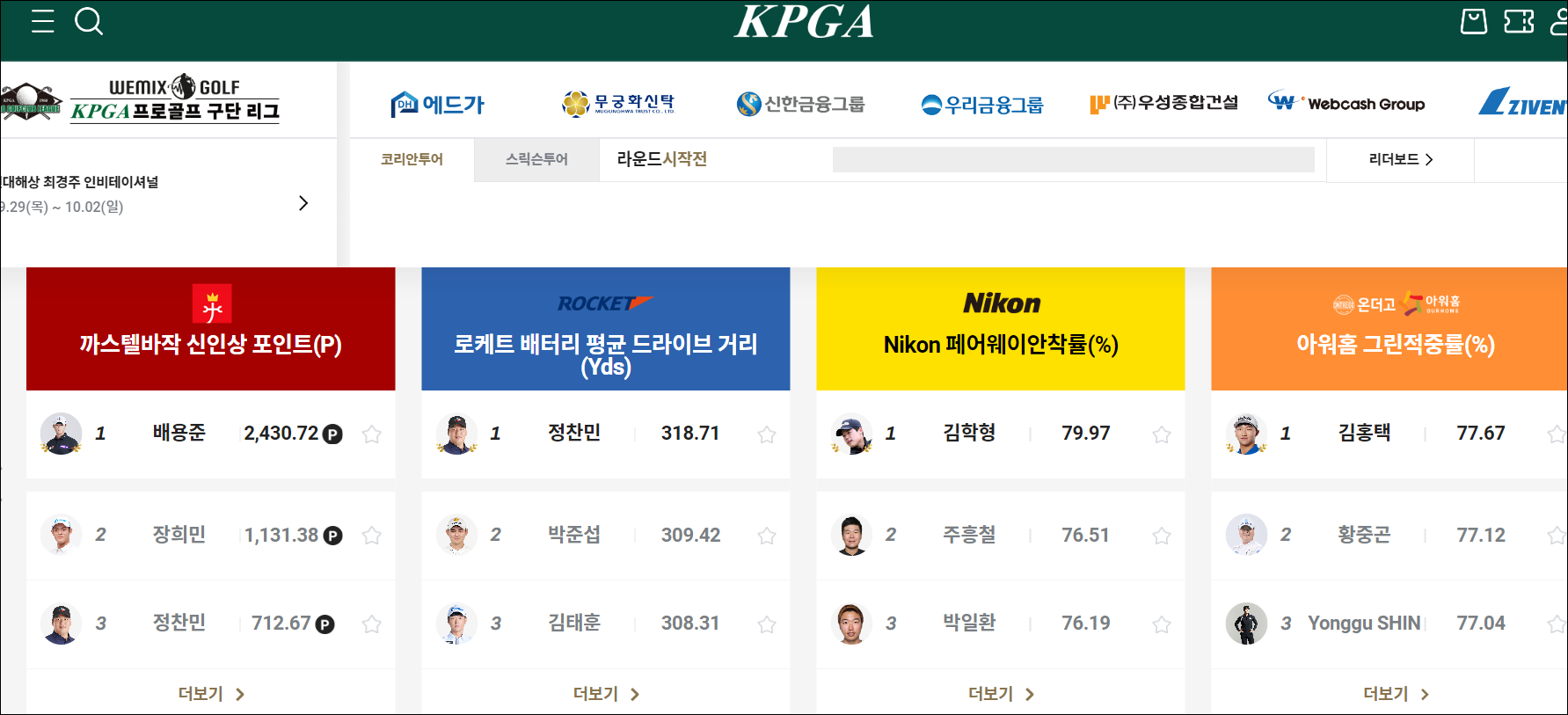 kpga 홈페이지 바로가기 : https://www.kpga.co.kr/