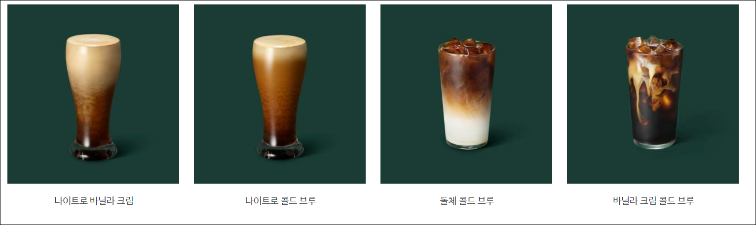 새로나온 신상음료 메뉴로 블랙 글레이즈드 라떼, 제주 사려니 쑥길 라떼, 제주 감귤 당근 스노잉 블렌디드, 호두 블랙 티 라떼가 있는데요. 더욱 자세한 스타벅스 메뉴는 아래 링크를 통해 홈페이지에서 확인하시기 바랍니다.