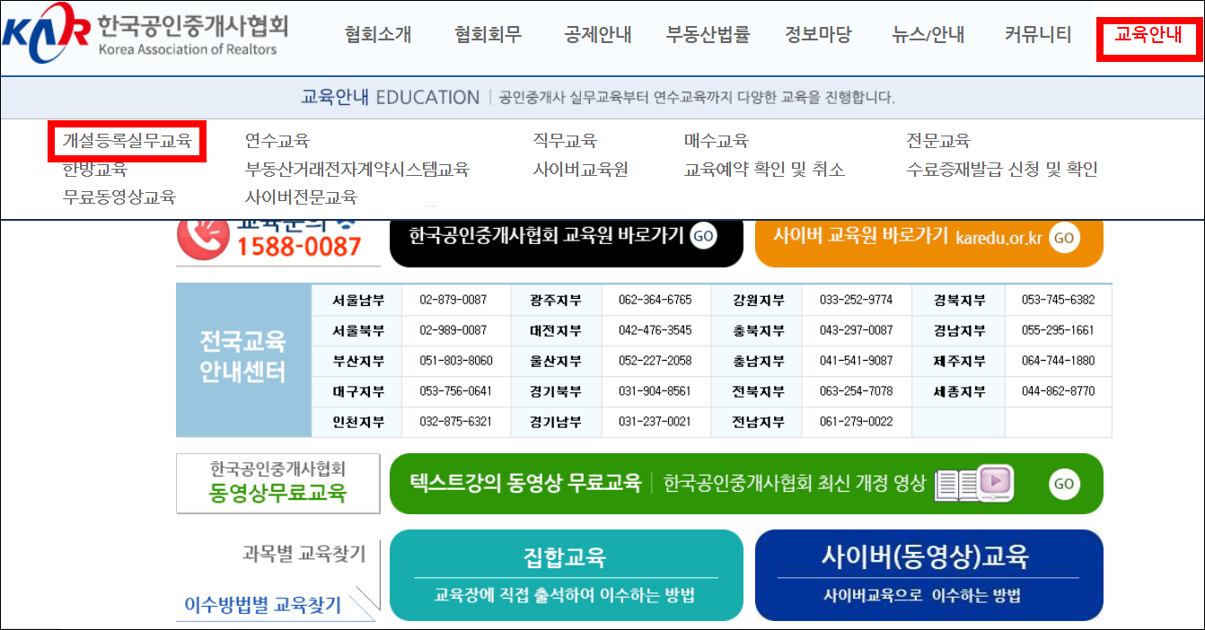 한국공인중개사협회 사이버교육원 바로가기 : https://karedu.or.kr/main/