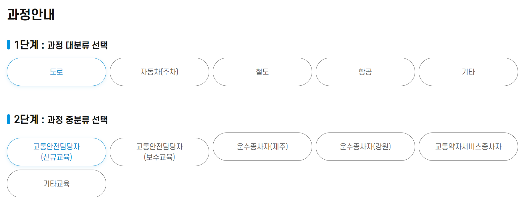 2. 직종 및 운수차량 선택, 신규/보수교육등 과정 선택하기