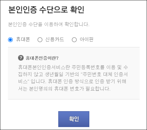 1. 홈페이지 접속후 첫 로그인시 휴대폰 본인인증을 통한 회원가입을 완료해야 합니다.