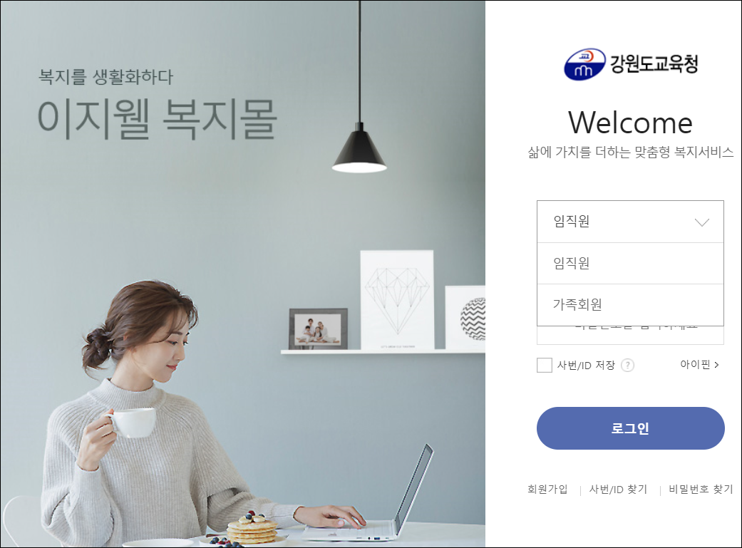 강원도교육청 온라인복지관 바로가기 : https://kwe.ezwel.com/cuser/login/loginForm.ez?url=&clientFamilyNm=null&goUrl=