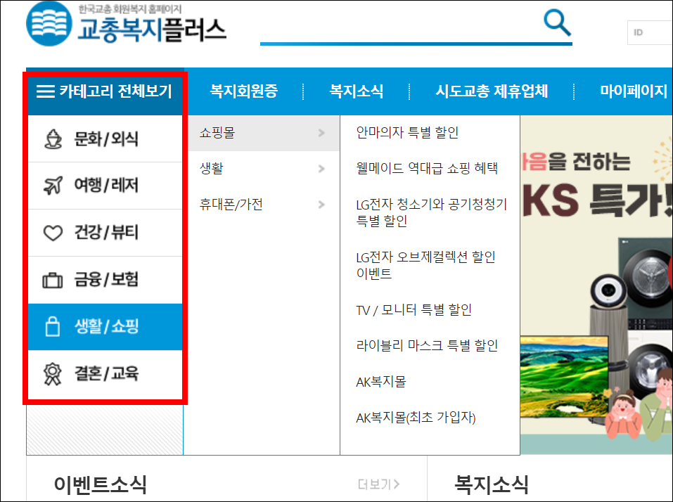 문화/외식, 여행/레저, 건강/뷰티, 금융/보험, 생활등 다양한 분야의 복지를 제공하며 해당 사이트 바로가기는 아래와 같습니다.