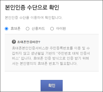 2. 휴대폰인증을 통해 본인인증을 완료합니다.