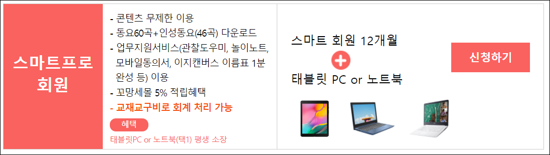 - 콘텐츠 무제한 이용 + 테플릿 PC, 노트북 (택1) 평생소장