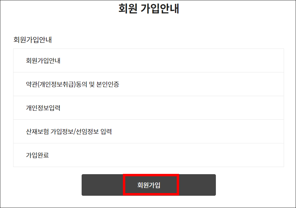 2. 다음화면에서 [회원가입] 버튼을 클릭합니다.