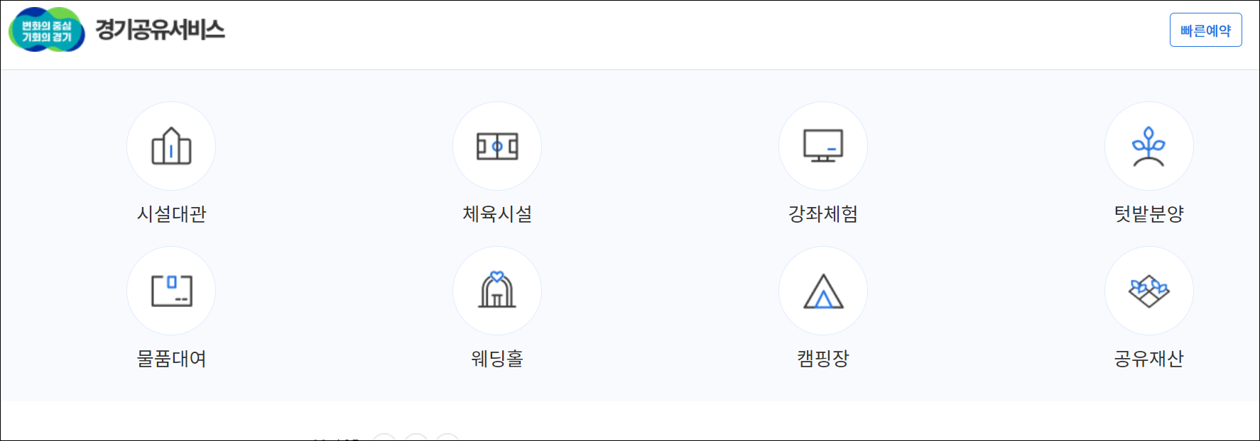 시설대관, 체육시설, 강좌체험, 텃밭분양, 물품대여, 웨딩홀, 캠핑장 등의 공유 정보 및 예약
