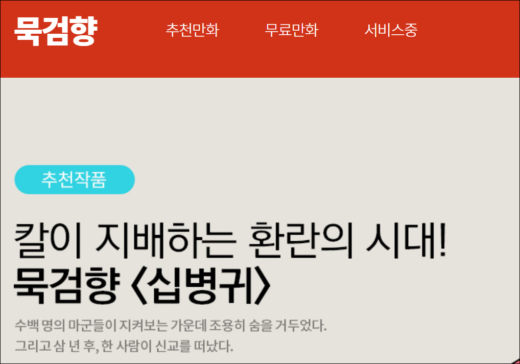 묵검향 홈페이지는 무협 만화가 묵검향 작가의 작품을 볼 수 있는 사이트인데요.