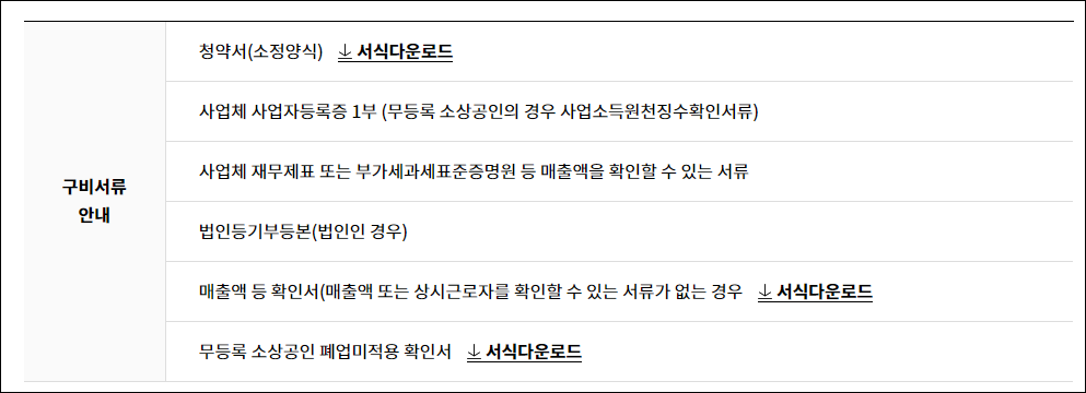 -사업체 사업자등록증 1부 (무등록 소상공인의 경우 사업소득원천징수확인서류)