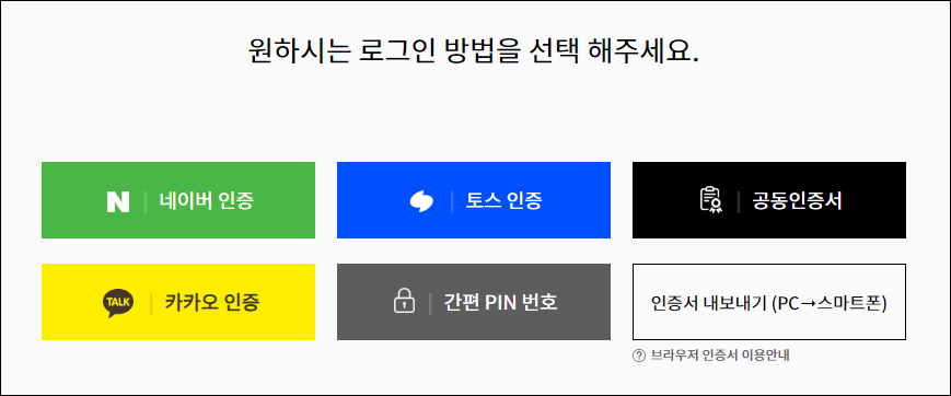 - 네이버 인증, 토스, 공동인증서, 카카오인증, PIN번호등을 통해 가입가능합니다.