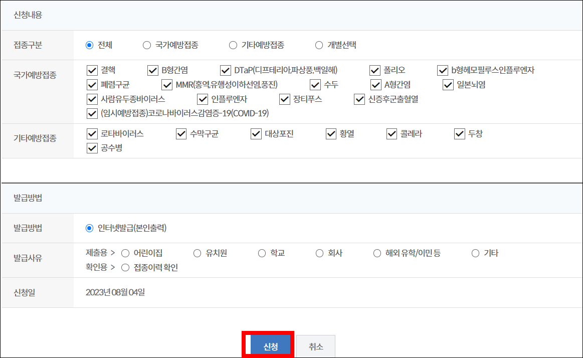 질병관리청 예방접종증명서 발급 방법