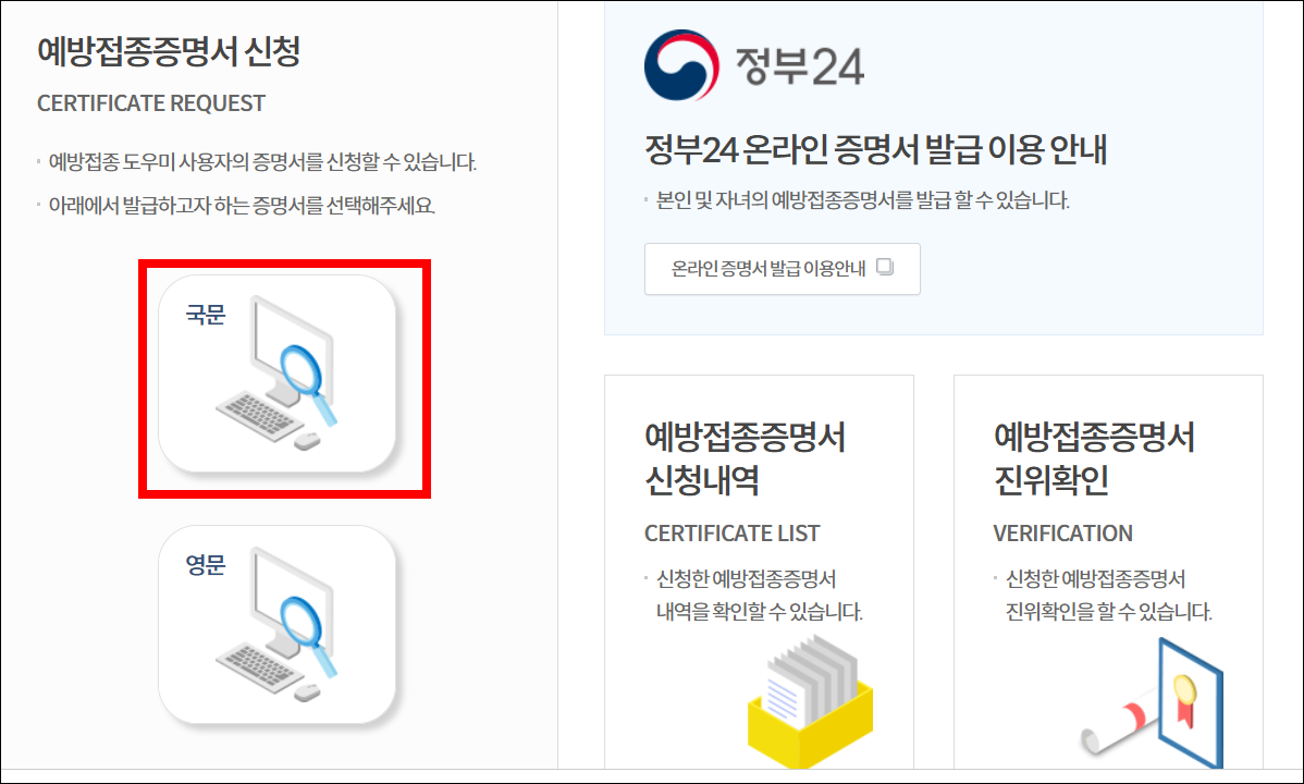 질병관리청 예방접종증명서 발급 방법