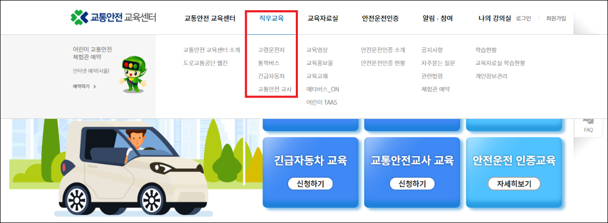 도로교통공단 교통안전교육센터는 고령운전자교육, 통학버스교육, 긴급자동차교육등의 교통안전관련 온라인 교육플랫폼인데요. 교통안전교육을 수강할 수 있도록 제공하고 있습니다.
