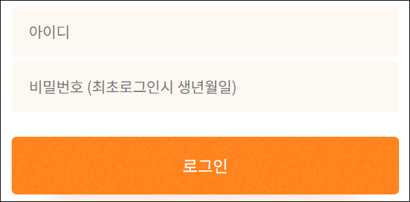 1. 홈페이지에 접속하신 후 아이디에 사원번호를 입력하고 비밀번호에 생년월일(주민번호 앞6자리)를 입력하여 로그인하세요. 과거 회원등록이나 예약 이력이 있는 경우 기존의 비밀번호를 입력하세요.