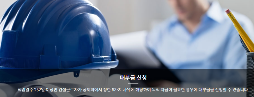 위와 같은 경우 공제회의 대부금을 신청가능하며 신청방법은 건설공제회 홈페이지를 통해 휴대폰 본인인증을 통해 신청가능합니다.