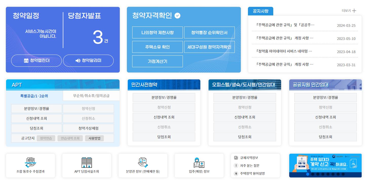 청약홈 홈페이지 바로가기 : https://www.applyhome.co.kr/co/coa/selectMainView.do