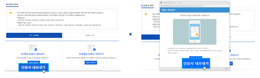 순으로 진행하시면 됩니다. 자세한 방법은 아래 공동인증서 내보내기를 참고하세요.
