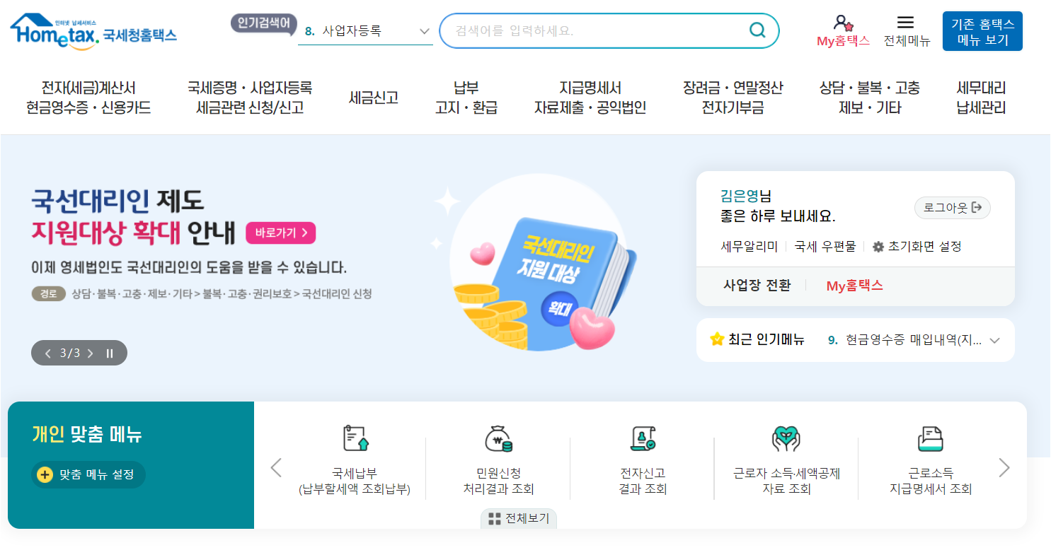 전자(세금)계산서 조회·발급, 현금영수증 조회·발급, 사업용신용카드 등록 등