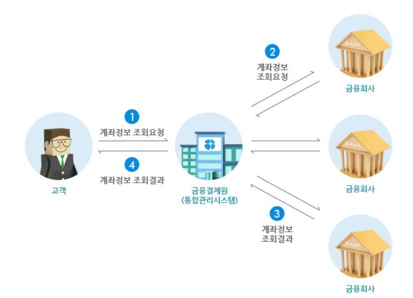 고객은 계좌통합관리서비스(Account Info) 홈페이지나 은행창구를 통해 개설된 모든 은행의 본인명 계좌 정보를 일괄 조회