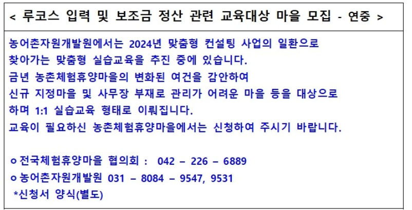 RUCOS 농촌체험휴양마을 사업관리시스템 :
