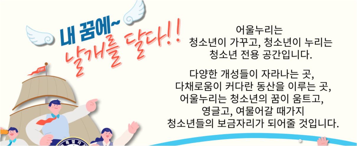 익산교육청에서는 청소년 전용공간인 어울누리를 제공하고 있는데요. 어울누리는 어울누리 사무실로 전화하여 예약을 신청해야 합니다. 이용대상은 익산관내 초등학생~고등학생들이며 사전예약이 필수입니다.